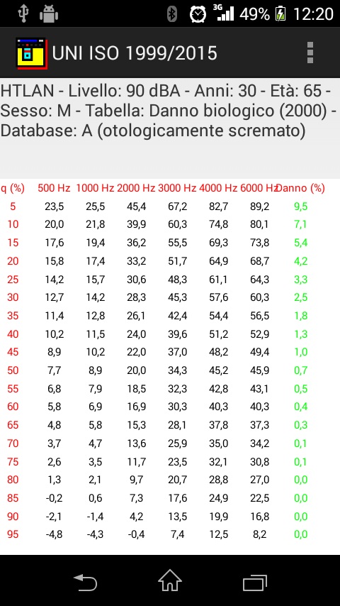 visualizza gli innalzamenti delle soglie di udibilità previsti dalla Norma
