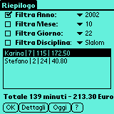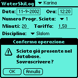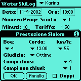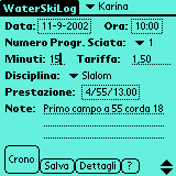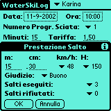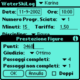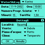 WaterSkiLog e' il software per la registrazione delle sedute di allenamento e delle prestazioni di atleti di sci nautico - discipline classiche e wakeboard. Permette inoltre di gestire la contabilità dei minuti pagati e sciati dai singoli atleti. E' uno strumento unico, completo e indispensabile per chi si allena atleti e gestisce un club di sci nautico. Questo software non è gratuito; per ricevere una versione DEMO o informazioni sui prezzi contattare l'Autore. Requisiti di sistema: sistema operativo Palm OS 4.0 o superiore; 100 kByte di spazio nella memoria principale del palmare; Windows 95, 98, 2000, XP e 900 kByte di spazio su disco rigido per la parte da installare sul PC. |